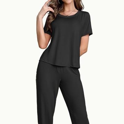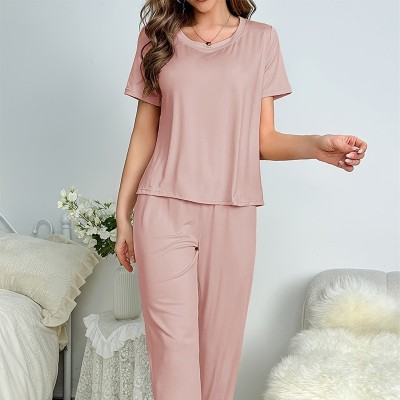 芬靓跨境2025年夏季女士家居服睡衣女套装舒适休闲简约可外穿百搭