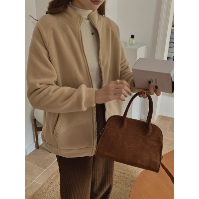 2024秋冬加厚加绒保暖外套女拉链开衫摇粒绒立领卫衣韩版休闲上衣