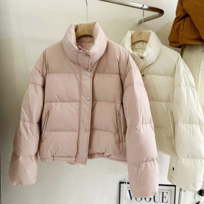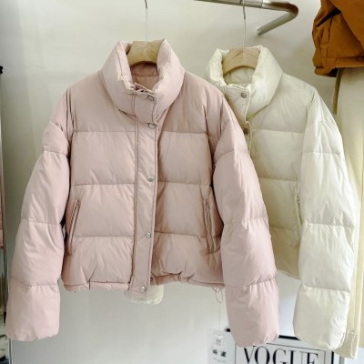 2025冬季新款韩系立领面包服短款白鸭绒羽绒服外套女装批发货源