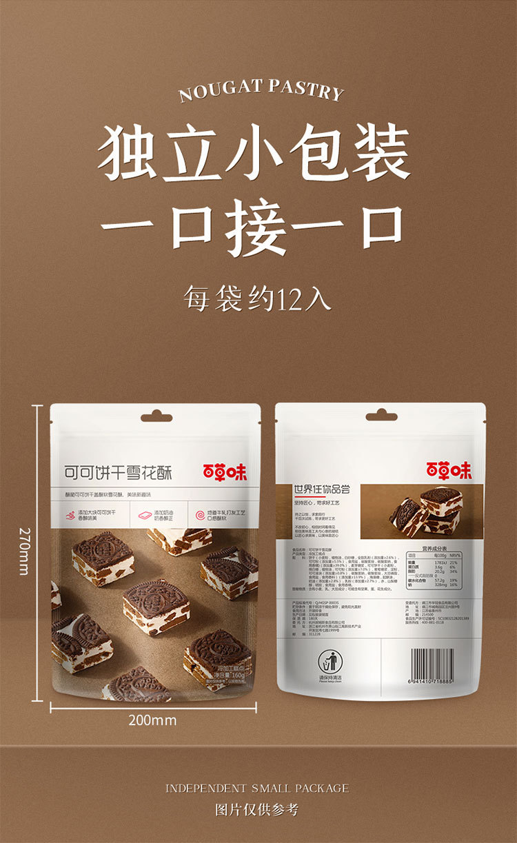 本网页所展示的有关【百草味 可可饼干雪花酥160g 休闲零食糕点蛋糕酥脆夹心饼干雪花酥_休闲零食_杭州蜜巢科技有限公司】的信息/图片/参数等由国民生活的会员【杭州蜜巢科技有限公司】提供,由国民生活会员【杭州蜜巢科技有限公司】自行对信息/图片/参数等的真实性、准确性和合法性负责,本平台(本网站)仅提供展示服务,请谨慎交易,因交易而产生的法律关系及法律纠纷由您自行协商解决,本平台(本网站)对此不承担任何责任。您在本网页可以浏览【百草味 可可饼干雪花酥160g 休闲零食糕点蛋糕酥脆夹心饼干雪花酥_休闲零食_杭州蜜巢科技有限公司】有关的信息/图片/价格等及提供【百草味 可可饼干雪花酥160g 休闲零食糕点蛋糕酥脆夹心饼干雪花酥_休闲零食_杭州蜜巢科技有限公司】的商家公司简介、联系方式等信息。