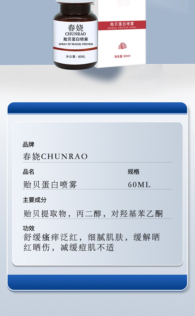 本网页所展示的有关【美容院贻贝粘蛋白修护喷雾补水保湿滋润修护敏感红脸爽肤水湿敷水_美容护肤_广州蓓兰美生物科技有限公司】的信息/图片/参数等由国民生活的会员【广州蓓兰美生物科技有限公司】提供,由国民生活会员【广州蓓兰美生物科技有限公司】自行对信息/图片/参数等的真实性、准确性和合法性负责,本平台(本网站)仅提供展示服务,请谨慎交易,因交易而产生的法律关系及法律纠纷由您自行协商解决,本平台(本网站)对此不承担任何责任。您在本网页可以浏览【美容院贻贝粘蛋白修护喷雾补水保湿滋润修护敏感红脸爽肤水湿敷水_美容护肤_广州蓓兰美生物科技有限公司】有关的信息/图片/价格等及提供【美容院贻贝粘蛋白修护喷雾补水保湿滋润修护敏感红脸爽肤水湿敷水_美容护肤_广州蓓兰美生物科技有限公司】的商家公司简介、联系方式等信息。