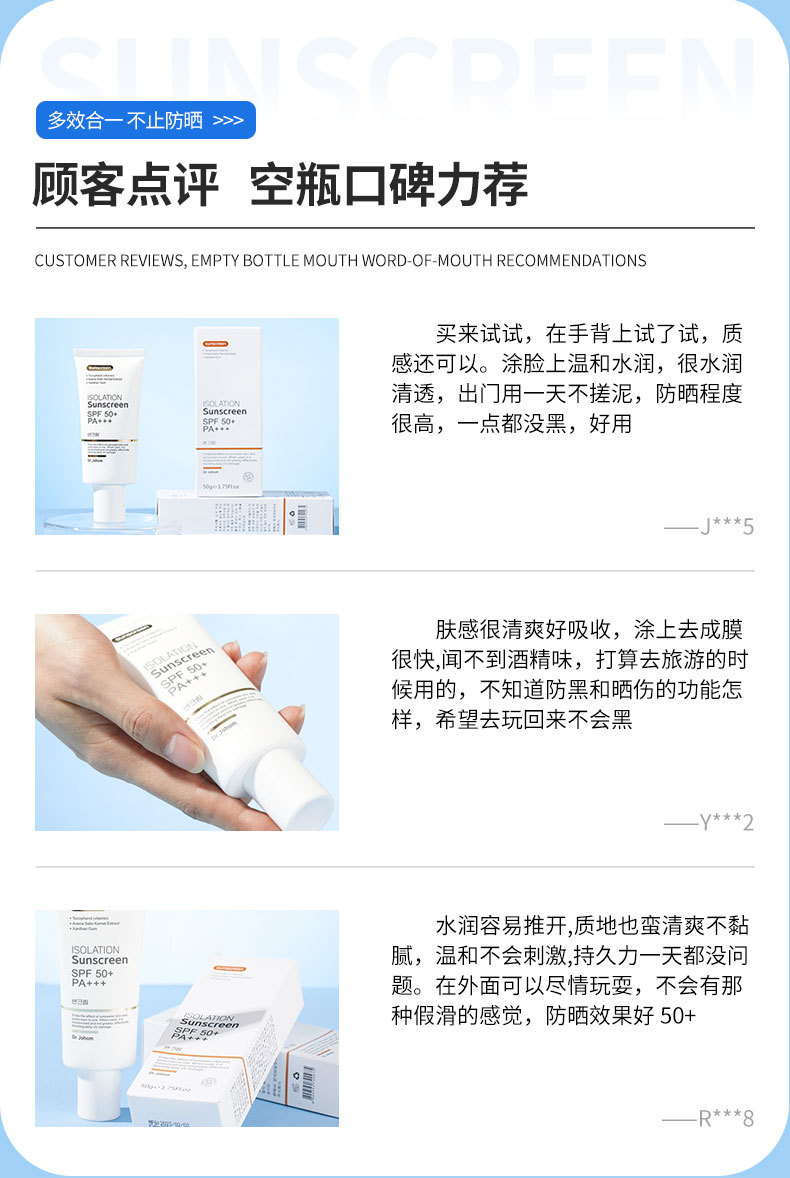本网页所展示的有关【Dr Johom美白防晒霜SPF50+防水防汗防紫外线清爽隔离防晒乳正品_身体护理_广州市依恋生物科技有限公司】的信息/图片/参数等由国民生活的会员【广州市依恋生物科技有限公司】提供,由国民生活会员【广州市依恋生物科技有限公司】自行对信息/图片/参数等的真实性、准确性和合法性负责,本平台(本网站)仅提供展示服务,请谨慎交易,因交易而产生的法律关系及法律纠纷由您自行协商解决,本平台(本网站)对此不承担任何责任。您在本网页可以浏览【Dr Johom美白防晒霜SPF50+防水防汗防紫外线清爽隔离防晒乳正品_身体护理_广州市依恋生物科技有限公司】有关的信息/图片/价格等及提供【Dr Johom美白防晒霜SPF50+防水防汗防紫外线清爽隔离防晒乳正品_身体护理_广州市依恋生物科技有限公司】的商家公司简介、联系方式等信息。
