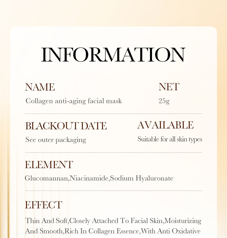 本网页所展示的有关【跨境外贸SADOER骨胶原面膜 补水滋润保湿护肤提靓肌肤 面膜贴_美容护肤_兴富生物科技(广东)有限公司】的信息/图片/参数等由国民生活的会员【兴富生物科技(广东)有限公司】提供,由国民生活会员【兴富生物科技(广东)有限公司】自行对信息/图片/参数等的真实性、准确性和合法性负责,本平台(本网站)仅提供展示服务,请谨慎交易,因交易而产生的法律关系及法律纠纷由您自行协商解决,本平台(本网站)对此不承担任何责任。您在本网页可以浏览【跨境外贸SADOER骨胶原面膜 补水滋润保湿护肤提靓肌肤 面膜贴_美容护肤_兴富生物科技(广东)有限公司】有关的信息/图片/价格等及提供【跨境外贸SADOER骨胶原面膜 补水滋润保湿护肤提靓肌肤 面膜贴_美容护肤_兴富生物科技(广东)有限公司】的商家公司简介、联系方式等信息。