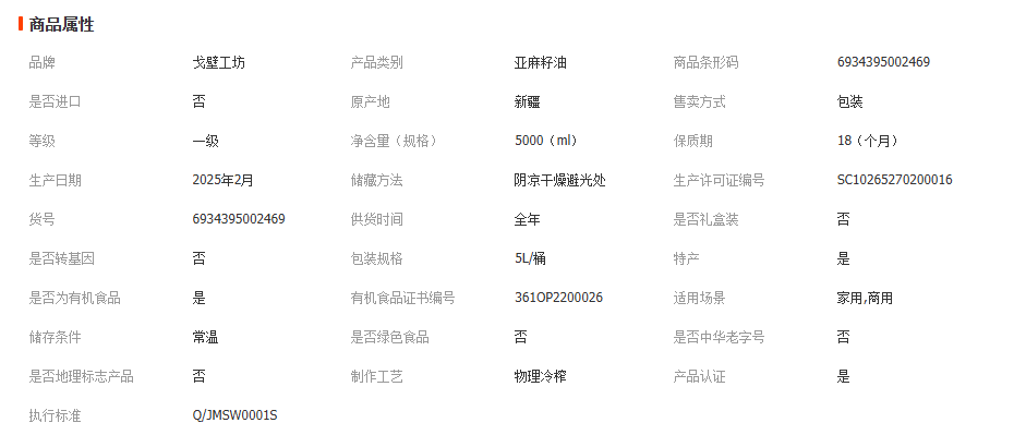 本网页所展示的有关【戈壁工坊 有机亚麻籽油5升家用食用油52%亚麻酸9.2斤植物油批发_粮油干货_新疆阳光绿地农业科技有限公司】的信息/图片/参数等由国民生活的会员【新疆阳光绿地农业科技有限公司】提供,由国民生活会员【新疆阳光绿地农业科技有限公司】自行对信息/图片/参数等的真实性、准确性和合法性负责,本平台(本网站)仅提供展示服务,请谨慎交易,因交易而产生的法律关系及法律纠纷由您自行协商解决,本平台(本网站)对此不承担任何责任。您在本网页可以浏览【戈壁工坊 有机亚麻籽油5升家用食用油52%亚麻酸9.2斤植物油批发_粮油干货_新疆阳光绿地农业科技有限公司】有关的信息/图片/价格等及提供【戈壁工坊 有机亚麻籽油5升家用食用油52%亚麻酸9.2斤植物油批发_粮油干货_新疆阳光绿地农业科技有限公司】的商家公司简介、联系方式等信息。