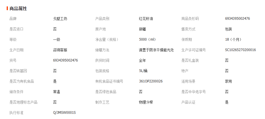 本网页所展示的有关【戈壁工坊 有机红花籽油5L装家用高烟点食用油77%亚油酸厂家批发_粮油干货_新疆阳光绿地农业科技有限公司】的信息/图片/参数等由国民生活的会员【新疆阳光绿地农业科技有限公司】提供,由国民生活会员【新疆阳光绿地农业科技有限公司】自行对信息/图片/参数等的真实性、准确性和合法性负责,本平台(本网站)仅提供展示服务,请谨慎交易,因交易而产生的法律关系及法律纠纷由您自行协商解决,本平台(本网站)对此不承担任何责任。您在本网页可以浏览【戈壁工坊 有机红花籽油5L装家用高烟点食用油77%亚油酸厂家批发_粮油干货_新疆阳光绿地农业科技有限公司】有关的信息/图片/价格等及提供【戈壁工坊 有机红花籽油5L装家用高烟点食用油77%亚油酸厂家批发_粮油干货_新疆阳光绿地农业科技有限公司】的商家公司简介、联系方式等信息。