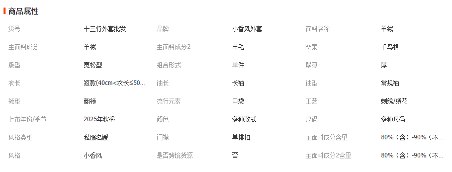 本网页所展示的有关【2025春秋粗花呢韩系小香风短款外套广州十三行服饰女装批发货源_服装_广州梦曦服装厂】的信息/图片/参数等由国民生活的会员【广州梦曦服装厂】提供,由国民生活会员【广州梦曦服装厂】自行对信息/图片/参数等的真实性、准确性和合法性负责,本平台(本网站)仅提供展示服务,请谨慎交易,因交易而产生的法律关系及法律纠纷由您自行协商解决,本平台(本网站)对此不承担任何责任。您在本网页可以浏览【2025春秋粗花呢韩系小香风短款外套广州十三行服饰女装批发货源_服装_广州梦曦服装厂】有关的信息/图片/价格等及提供【2025春秋粗花呢韩系小香风短款外套广州十三行服饰女装批发货源_服装_广州梦曦服装厂】的商家公司简介、联系方式等信息。