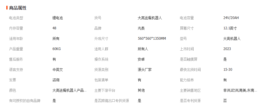 本网页所展示的有关【严选智能点餐送餐机器人语音接待餐厅酒店送水端菜自动服务机器人_智能设备_广州光泰机器人科技有限公司】的信息/图片/参数等由国民生活的会员【广州光泰机器人科技有限公司】提供,由国民生活会员【广州光泰机器人科技有限公司】自行对信息/图片/参数等的真实性、准确性和合法性负责,本平台(本网站)仅提供展示服务,请谨慎交易,因交易而产生的法律关系及法律纠纷由您自行协商解决,本平台(本网站)对此不承担任何责任。您在本网页可以浏览【严选智能点餐送餐机器人语音接待餐厅酒店送水端菜自动服务机器人_智能设备_广州光泰机器人科技有限公司】有关的信息/图片/价格等及提供【严选智能点餐送餐机器人语音接待餐厅酒店送水端菜自动服务机器人_智能设备_广州光泰机器人科技有限公司】的商家公司简介、联系方式等信息。