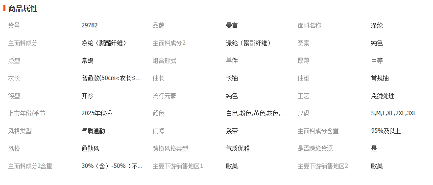 本网页所展示的有关【西装外套女高级感2025春秋欧美女装气质通勤收腰系带垫肩西装外套_服装_广州市曼言服饰有限公司】的信息/图片/参数等由国民生活的会员【广州市曼言服饰有限公司】提供,由国民生活会员【广州市曼言服饰有限公司】自行对信息/图片/参数等的真实性、准确性和合法性负责,本平台(本网站)仅提供展示服务,请谨慎交易,因交易而产生的法律关系及法律纠纷由您自行协商解决,本平台(本网站)对此不承担任何责任。您在本网页可以浏览【西装外套女高级感2025春秋欧美女装气质通勤收腰系带垫肩西装外套_服装_广州市曼言服饰有限公司】有关的信息/图片/价格等及提供【西装外套女高级感2025春秋欧美女装气质通勤收腰系带垫肩西装外套_服装_广州市曼言服饰有限公司】的商家公司简介、联系方式等信息。