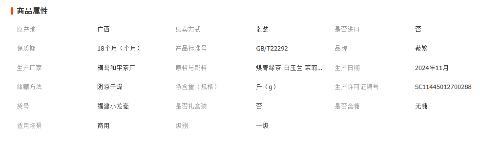 本网页所展示的有关【茉莉花茶福建小龙毫浓香型新品现货批发茉莉大白毫500g茶叶散装袋_茶叶/冲饮_广西菽繁茶业有限公司】的信息/图片/参数等由国民生活的会员【广西菽繁茶业有限公司】提供,由国民生活会员【广西菽繁茶业有限公司】自行对信息/图片/参数等的真实性、准确性和合法性负责,本平台(本网站)仅提供展示服务,请谨慎交易,因交易而产生的法律关系及法律纠纷由您自行协商解决,本平台(本网站)对此不承担任何责任。您在本网页可以浏览【茉莉花茶福建小龙毫浓香型新品现货批发茉莉大白毫500g茶叶散装袋_茶叶/冲饮_广西菽繁茶业有限公司】有关的信息/图片/价格等及提供【茉莉花茶福建小龙毫浓香型新品现货批发茉莉大白毫500g茶叶散装袋_茶叶/冲饮_广西菽繁茶业有限公司】的商家公司简介、联系方式等信息。